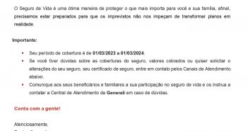 O Grupo Generali informa que o Seguro de Vida em Grupo renovado em 01/03/2023, aparecerá…